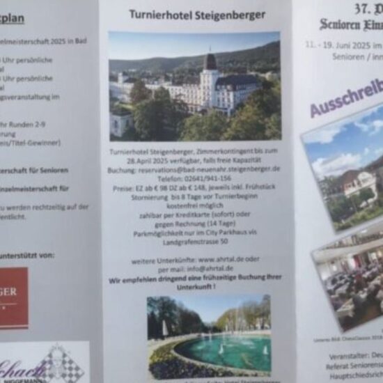 Beginnen wir mit der Nachricht, dass der deutsche Schachbund sich in seinem Jubiläumsjahr 2027 um eine Seniorenweltmeisterschaft bemüht und diese in Magdeburg stattfinden soll. Der Schachbund veröffentlichte zunächst eine derart widersprüchlich formulierte Pressemeldung, dass einige Beobachter meinten, dass der Schachbund die Einzelweltmeisterschaft in Magdeburg ausrichten möchte. Das sorgte für Verwirrung und bei einem, der sich ebenfalls dafür bewirbt und mit dem DSB in Kontakt steht, für verständliche Enttäuschung. Der Fall war dann recht schnell aufgeklärt und die Pressemeldung korrigiert – und nur noch diese wird vom DSB auf seiner Homepage angezeigt: In Magdeburg soll das Teamevent stattfinden. Solche kommunikativen Kurzkrisen können passieren, sind aber natürlich ärgerlich und die direkte Folge einer recht untalentiert geschriebenen Pressemeldung.