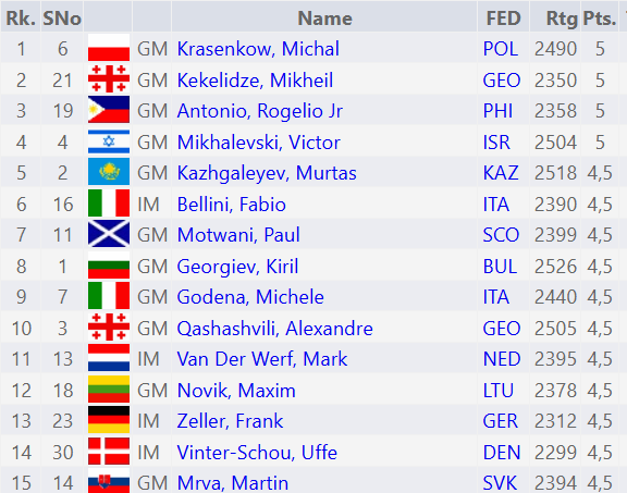 Eine andere Kurzpartie in der sechsten Runde gelang dem bulgarischen Elofavoriten Kiril Georgiev, der mit seinem Keres-Angriff seinen österreichischen Gegner offenbar überraschen konnte.