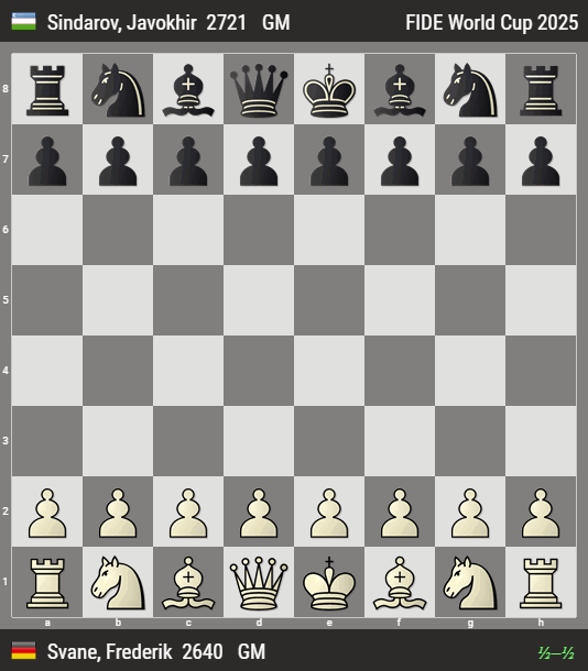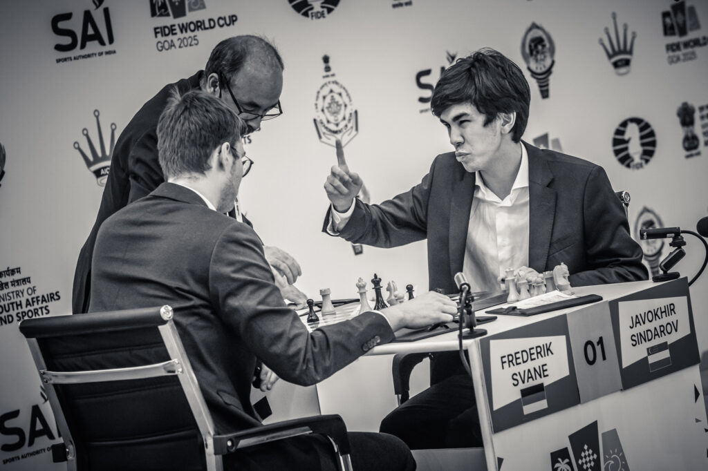 Frederik Svane spielte zwei hochinteressante Partien. In der ersten Partie gelang es ihm zunächst nicht, seinem Angriff überzeugend vorzutragen und so landete er nach mehreren Damenzügen in einer fast hoffnungslosen Lage. Aber sein 19-jähriger usbekischer Gegner Javokhir Sindarov konnte seinen Vorteil nicht halten und nach der Zeitkontrolle sah es nach einem baldigen Remis aus. Als ich nach einem längeren Spaziergang an der spanischen Mittelmeerküste dann wieder in einem Café auf die Stellung schaute, konnte ich es fast nicht glauben. Frederik hatte die Stellung leider falsch angepackt und verloren. Schaut man genauer hin, dann war es nach einer ungenauen Verteidigung nicht mehr so einfach und später wurde es komplett unübersichtlich und Frederik verlor irgendwann den Faden. Im Rückspiel gelang es Frederik gegen einen hervorragend vorbereiteten Gegner zwar einen Bauern zu erobern, aber es sprang kein ausreichender Vorteil dabei heraus. Frederik war raus.