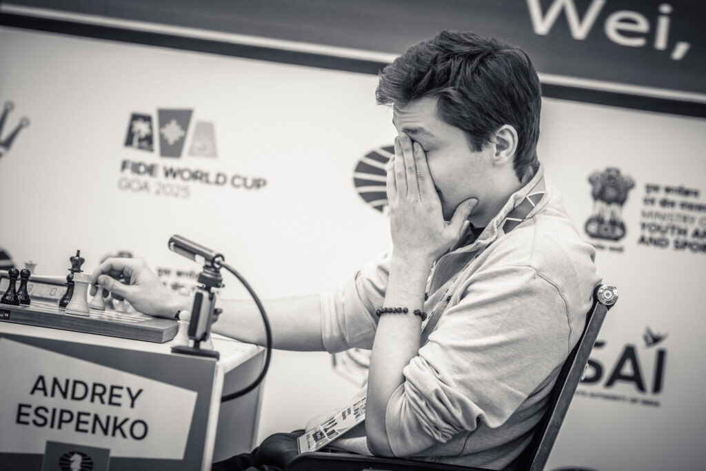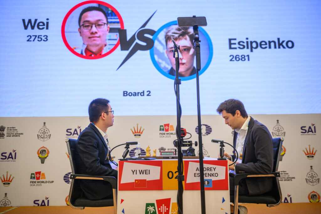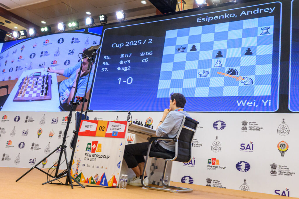 World Cup, Goa (Indien). Ein grober Einsteller von Andrey Esipenko (23) entschied den Wettkampf und damit die direkte Qualifikation für Wei Yi (26). Die Entscheidung im anderen Wettkampf waren einige schlechte Entscheidungen im Doppelturmendspiel zwischen den zwei Usbeken. Javokhir Sindarov (19) gewann gegen seinen Freund Nodirbek Yakubboev (23).
