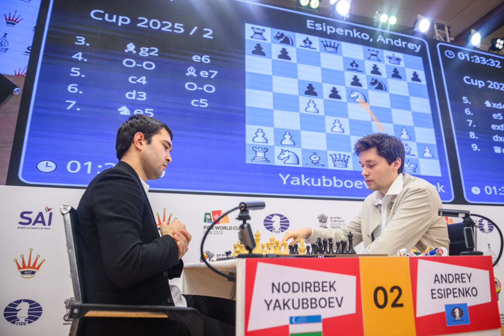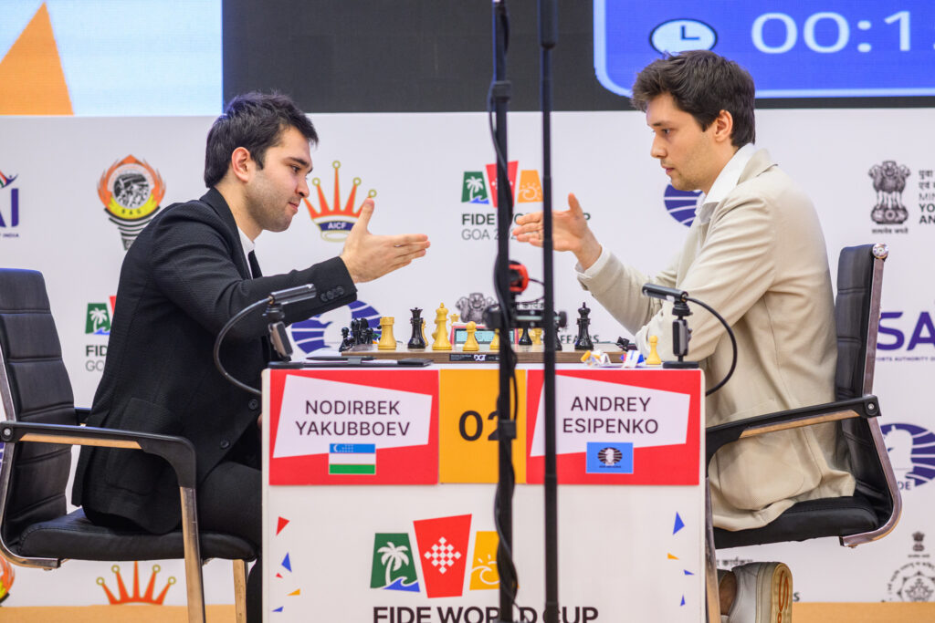 Man ist es nach dem Halbfinale fast nicht mehr gewohnt, aber ein Spieler gewann in einer Begegnung mit klassischer Bedenkzeit. Auf dem Brett war ein Sizilianer. Nach den beiden Partien lobte Andrey Esipenko seinen Freund und Sekundanten Großmeister Dawid Arturowitsch Parawjan, der ebenfalls genau wie beim Grand Swiss vor Ort war.