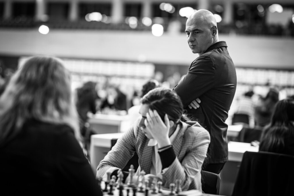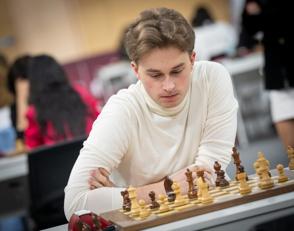 Letztlich kann sich sogar eine Spielerin, die noch gar nicht in Erscheinung getreten ist bis dahin in der Saison. Allerdings ist dafür ein Sieg im Schnellschach zwingend. Bei den Frauen wurden am ersten Tag vier Runden und in der offenen Klasse fünf Runden gespielt. Der Titelverteidiger Volodar Murzin (2 aus 5) und der deutsche Topspieler Vincent Keymer (2.5) kamen nicht gut aus den Startblöcken. Vincent stellte in der fünften Runde recht grob einen Springer ein, weil er eine einfache Gabel seines Gegners übersah.