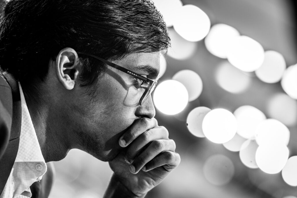 Der Inder Praggnanandhaa hat nicht nur im Turnierschach als auch im Schnellschach ein Problem mit dem Einteilen seiner Bedenkzeit. Die obige Stellung ist auf dem Brett entschieden und der Inder verlor diese Gewinnstellung sogar noch. Wie sollte er hier fortsetzen? Was sollte er vermeiden? Manches kann man im Schach nicht erklären. Jedenfalls ist auffällig, dass Pragg bis Zypern noch ein ernstes Problem lösen. Sandipan Chanda ist ein 42-jähriger Schachgroßmeister und einer der Coaches von WACA, der Westbridge Anand Chess Academy. Hier verliert also der Schüler gegen einen seiner Trainer. Hoffen wir für den jüngeren Inder, dass er daraus seine Lehren zieht.