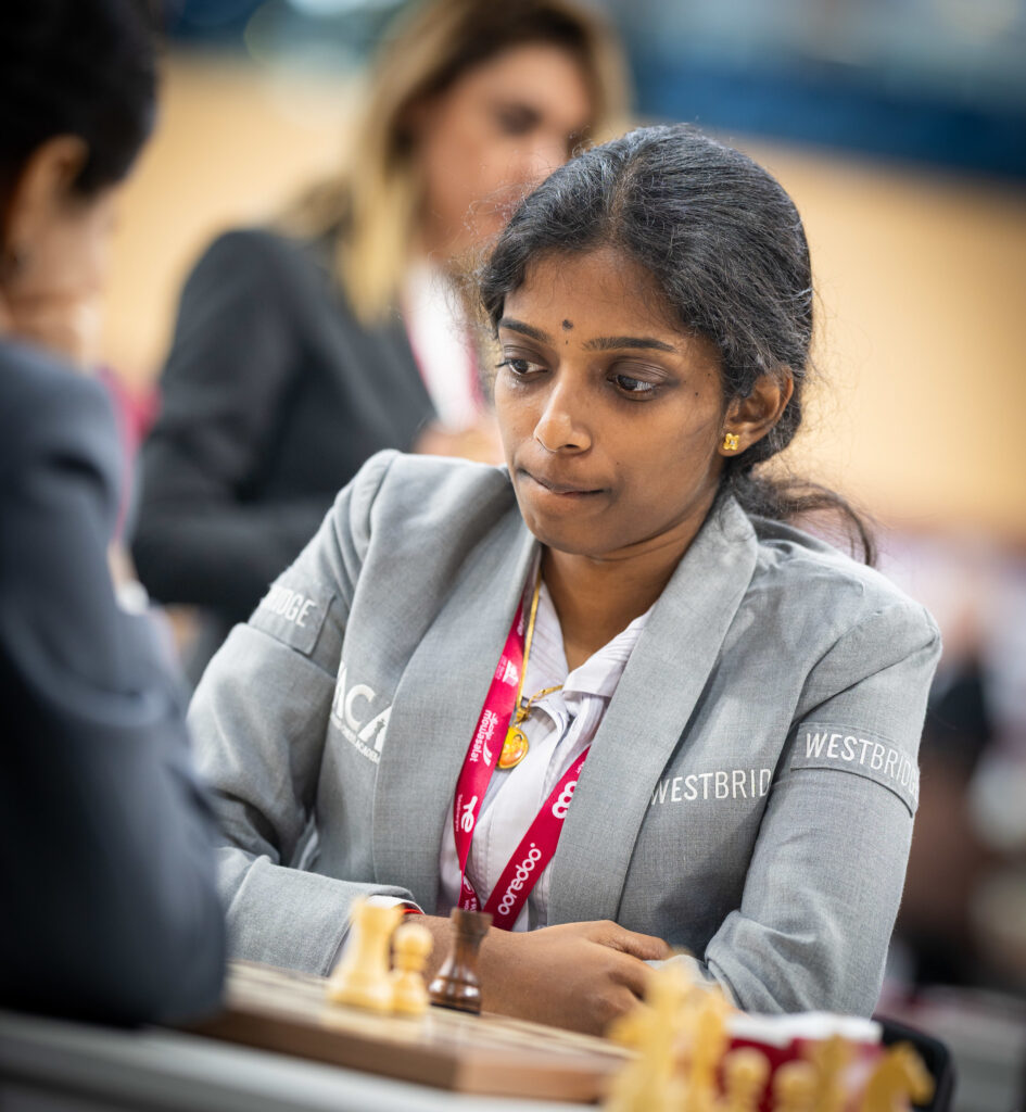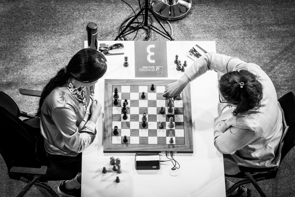 Die Inderin Vaishali hatte in der dritten Runde mit Tan Zhongyi eine der Mitfavoritinnen geschlagen und sie hatte mit drei Punkten aus drei Partien einen sehr guten Start erwischt. Gegen die Ukrainerin und Ex-Weltmeisterin Mariya Muzychuk hatte Vaishali eine Gewinnstellung und patzte sogar noch gröber als ihr Bruder eine Runde später.