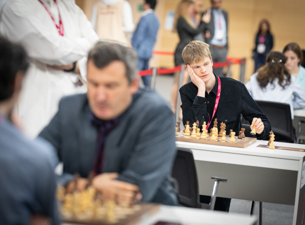 Der argentinische Goldjunge, Faustino Oro, hatte schon zu Beginn einige schwergewichtige Gegner und verlor seine beiden Schwarzpartien gegen Wesley So und Levon Aronian nach hartem Kampf. Vorher hatte er bereits gegen Shakhriyar Mamedyrov und Leinier Dominguez Perez remisiert. Die Fehlerquote war gegen Ende des Tages etwas hoch, aber die argentinischen Fans können mit dem Ergebnis ihres Hoffnungsträgers am ersten Tag zufrieden sein. Gegen Levon entschieden einige grobe Fehler und ein Hin- und Her die Partie. In der ersten Runde hatte der junge Argentinier noch eine im höheren Sinne gewonnene, aber komplexe Stellung unentschieden gegeben.