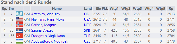 Vladislav Artemiev begann den zweiten Tag mit zwei Siegen gegen Arjun Erigaisi und Magnus Carlsen. Er ist damit der zu schlagende Spieler in den anstehenden Finalrunden. Seine Spezialität in diesem turnier scheint es zu sein, seine Gegner durch horrende Zeitnot zu mangelnder Vorsicht zu verleiten.