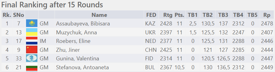 Eigentlich schien die Russin Valentina Gunina sicher qualifiziert. Allerdings verlor sie ihre Letztrundenbegegnung ausgerechnet gegen die Ukrainerin Anna Muzychuk und schied aus. Es begann das große Rechnen, wer es über die Stichkampfregelung schaffen würde.