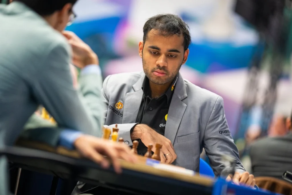 Weltmeister Gukesh und Praggnanandhaa sind keine Freunde, sondern in erster Linie Rivalen, die sich in ihren Partien gegeneinander wenig schenken. Die Begegnungen der beiden Jungs aus Chennai sind oft aufregend. Diesmal war der Verlauf vergleichsweise ausgeglichen und die Partie endete mit Dauerschach im Damenendspiel.