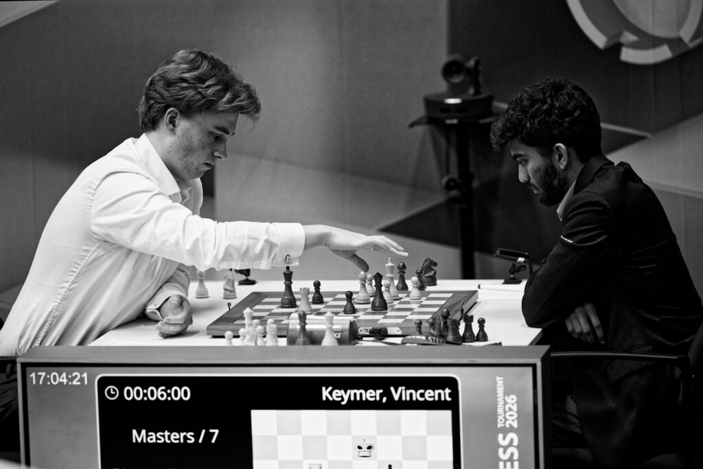 Die Begegnung zwischen Gukesh und seinem ehemaligen Zuarbeiter Vincent Keymer war vermutlich für deutsche Fans die Partie mit der größten Aufmerksamkeit. Für Zuschauer wurde einiges geboten und man sah, dass Gukesh sich nicht mit einem schnellen Unentschieden begnügen würde. Nach großem Kampf endete die Partie dann doch friedlich. Matthis Blübaum und der 14-jährige Türke Yagis Kaan Erdogmus waren sich recht schnell handelseinig. Praggnanandhaa schien gegen den Niederländer Jorden Van Foreest ein weiteres mal hinter sich greifen zu müssen. Im Wijk-Endspiel mit Turm und Springer gegen Turm und Springer verpasste Jorden ausgerechnet im Kontrollzug seine Chance und die Partie endete wenig später Remis. Auch Anish Giri und Hans Niemann beschlossen kein Risiko zu gehen und trennten sich letztlich friedlich.