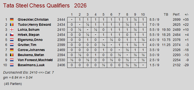 Das Qualifikationsturnier für das Masters im nächsten Jahr für viele Spieler ein Highlight. Allerdings passierte es nicht wenigen Spielern im Jahr darauf bei den „Großen“ einen Schock zu erleiden. So erging es Alexander Donchenko, Arjun Erigaisi und in diesem Jahr dem Vorjahressieger Dai Thai Van Nguyen. Um oben mitzuhalten muss der US-Amerikaner die Zeit sicherlich gut nutzen. Aber es gab natürlich noch andere Geschichten. Besonders schwer in Tritt kam der niederländische Großmeister Erwin L’Ami, der zudem in der letzten Runde gegen den späteren Turniersieger unterlag. Ein sehr solides Turnier spielte die Frauen-Kandidatin Bibisara Assaubaeva, die mit ihrem Probelauf zufrieden sein dürfte und Anfang Februar in Deutschland eine Art Schaukampf mit guter Dotierung spielen soll. Faustino Oro (2013) spielte ein solides Turnier und holte mehr als im Jahr zuvor. Wohingegen die andere Juniorin im Feld, die Chinesin Lu Miaoyi (2010), keine sichtbare Ergebnisverbesserung vorweisen kann im Vergleich zum Vorjahr.