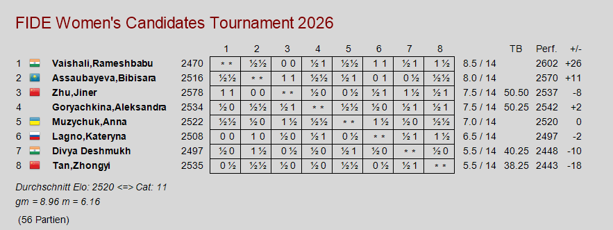 Die Partien sind sortiert in der Reihenfolge in der sie beendet wurden.